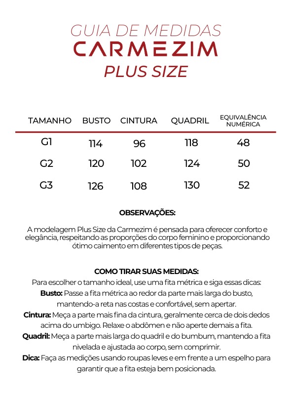 • Modelagem plus size que valoriza e equilibra a silhueta